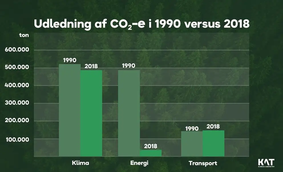 Energi, som dækker over udledninger fra opvarmning, industri, elforbruget og import af energi. Det stod for 45% af den samlede udledning i 1990. Energi, som dækker over udledninger fra opvarmning, industri, elforbruget og import af energi. Det stod for 42% af den samlede udledning i 1990.